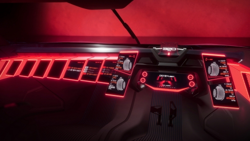 在R模式下,車內(nèi)亮起紅色燈光,以駕駛員為核心打造駕駛艙環(huán)境,有助于駕駛員集中注意力。儀表板上的面板向座椅空間延伸,以增強(qiáng)周圍的駕駛艙感觸。同時(shí),圍繞方向盤排列的四個(gè)屏幕可以顯示輪胎抓地力、溫度、氣壓、剎車盤溫度、動(dòng)力分配以及其它便于賽車發(fā)揮性能的重要信息。