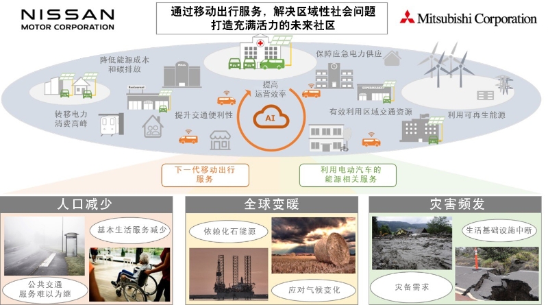 日產(chǎn)汽車和三菱商事意識到,需要構(gòu)建新的技術(shù)與服務(wù)模式,才能夠解決這些區(qū)域特定的挑戰(zhàn)并振興社區(qū)。為了實現(xiàn)這一目標并為社會做出貢獻,日產(chǎn)汽車與三菱商事簽署了合作諒解備忘錄,旨在共同創(chuàng)造可持續(xù)的商業(yè)模式。兩家公司將利用各自的專業(yè)知識和經(jīng)驗,以日本為起點,通過利用下一代移動出行和與電動汽車相關(guān)的能源服務(wù),實現(xiàn)商業(yè)化運營。