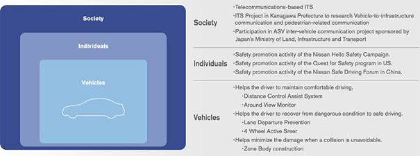 日產(chǎn)為實(shí)現(xiàn)真正安全的汽車社會(huì),從各種角度進(jìn)行多種努力。