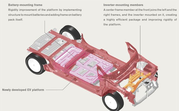 新研發(fā)的電動(dòng)車專用平臺(tái),應(yīng)用在于2010年12月上市的"日產(chǎn)LEAF"上。 由于是針對(duì)電動(dòng)車而設(shè)計(jì)研發(fā)的,因此在汽車底部配置了較薄的薄片結(jié)構(gòu)電池,使得車內(nèi)空間非常寬敞。