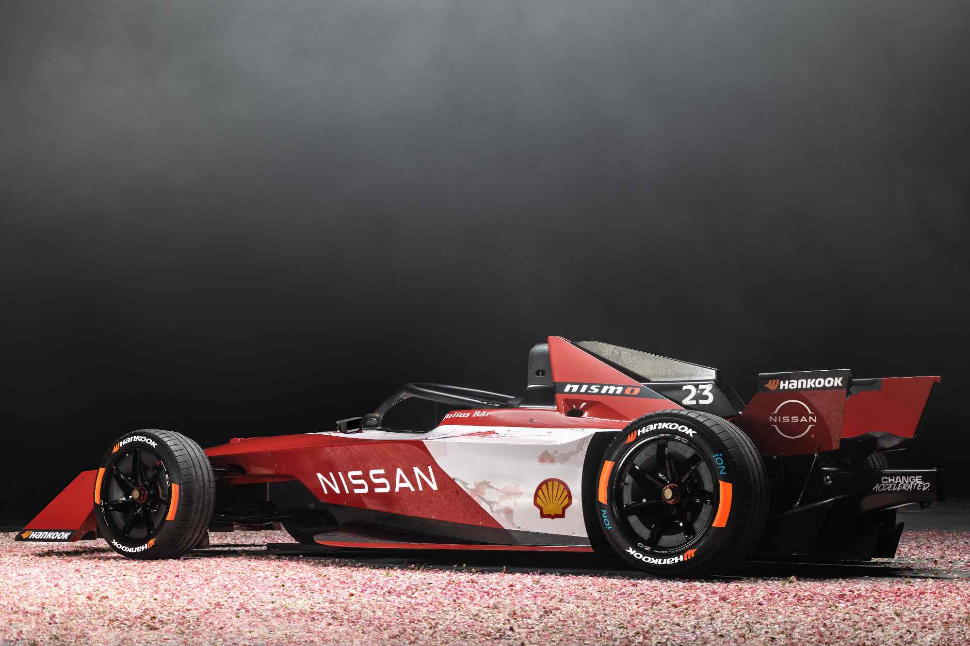 日產Formula E Gen3賽車在車身設計上融入櫻花圖案,不僅彰顯了車隊的日式DNA、也象征著對開啟全新征程的祝福。以純電力驅動的日產 Gen3賽車動力更強勁、速度更快,展現了日產汽車在動力總成技術方面的發展及成果。